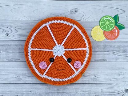 Our finished Orange Slice Kawaii Cuddler® is 11″ Diameter. Hook size, yarn choice, and crochet tension will affect each individual result.