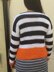 Aran weigh jumper worked in large stripes. Simple make using trebles(USA double crochet). Drop shoulder, shallow neckline. Some shaping on sleeves
