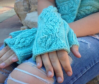 Stretchy, ribbed fingerless mitts with simple increases and decreases to keep them interesting.
