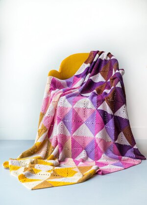 Origami Blanket The Origami Blanket brings your favourite colour combinations to life! The two-toned squares are arranged in such a way that a beautiful and vivid gradient emerges The resulting blanket is soft, supple and comfortably big. The pattern is written in US terms, and contains a written pattern, photo tutorials, crochet diagrams and schematics. It’s suitable for advanced beginners.