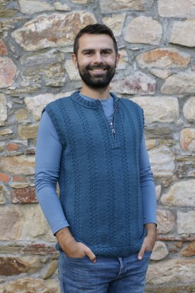 ORLANDO - a plain coloured sleeveless pullover in DK-weight wool for the man. To be worked flat or on circular needles until armhole - both ways are explained in the pattern. A detailed written pattern with chart for the handsome textured pattern. A pullover ideal for the sailor and it is named ORLANDO after the town Capo d'Orlando where there are a beautiful newly established marina. This design is suitable for all ages - and for the slender ones as well as for those more round in figur - for the young ones as well as for the more mature person.