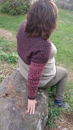 The Oslo Shrug has its roots in the traditional Lusekofte-sweater and the classic knitting patterns collected by Annichen Sibbern Bøhn in “Norwegian Knitting Designs”. The Lusekofte with the single stitches (lice) of a contrasting colour has had a special position in Norwegian knitting traditions for a long time. It has recently seen a new revival with the use of lighter yarns, and the Oslo Shrug is just the thing to keep you warm while wearing short sleeved tops and dresses in the colder season!