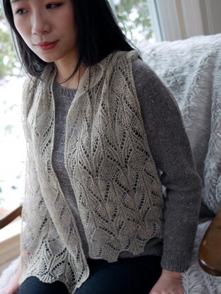This fanciful rectangular scarf or stole features a deeply etched motif with plenty of textural interest to move the eye for a fascinating effect. When knit in a fine lace yarn, the linework will stand out in stark relief against a sheer background fabric. A mix of simple and complex lacework will keep this project interesting for intermediate and experienced lace knitters who want to stretch their skills. Be assured however that the wrong side work is quite logical and easily mastered with repetition—the stunning results are well worth the effort!
