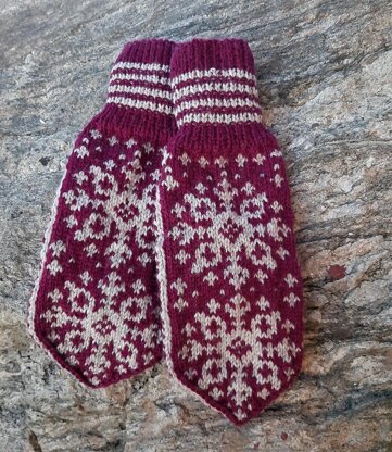 Vestavind are warm winter mittens knitted in a traditional Norwegian design.