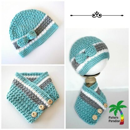 I originally designed this for a friend’s son and it looks terrific in more masculine colors, but you can add a bow and change the colors up a bit for a more feminine look. Try pretty flower or butterfly buttons for the cowl/scarf or maybe glamorous rhinestones!