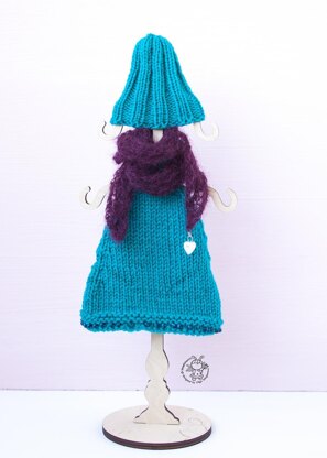 This PDF pattern for knitted outfit includes a description of knitting dress, hat, coat and scarf.