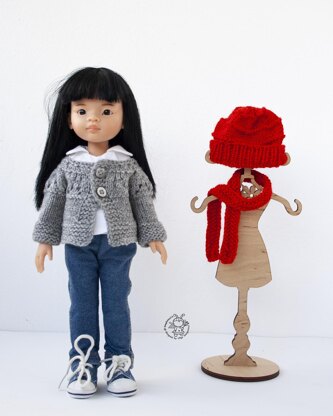Materials needed • 2 needles and circular needles in a size suitable for the yarn weight you are using. I recommend using needles a size or two smaller than the yarn calls for, to produce a firm fabric. size 1 (2,5 mm), size 2,5 (3.0 mm). • Gray colored yarn Cascade 220 Fingering color Indigo Frost Heather (9559) (100% acrylic 304 meters / 100 grams) for a jacket • Red colored yarn Special Stylecraft DK color Matador (1010) (100% acrylic 304 meters / 100 grams) for a hat • 2 Buttons for the jacket • Yarn needle • Stitch holder