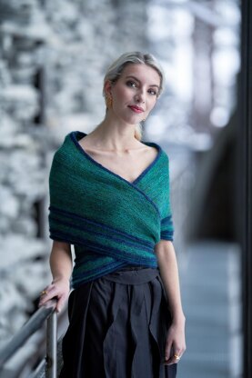 Named after an old female name from Norway is this shawl with tucks, short rows and garter stitch stripes in two colors. The hem and one tuck made on the wrong side, in addition to the double I-cord bind off, make the shawl two-sided. Choose if you want to wear it as a shawl, or a wrap around your body or as a shawl collar. Ovedine is knitted in two gorgeous hand dyed shades by Værbitt on the pelt wool Sølje from Hillesvåg Ullvarefabrikk.