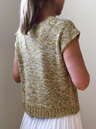 Somewhere between a tee and a tank, this top makes a great warm weather staple or a lovely layering piece for cooler weather. Suggested ease is 1½ - 4 inches (3.5 - 10 cm).