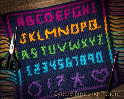 A chart is included along with a legend for each type of stitch. Because most people will want to arrange the letters into their own order, there aren't written row-by-row instructions as this will differ for everyone.
