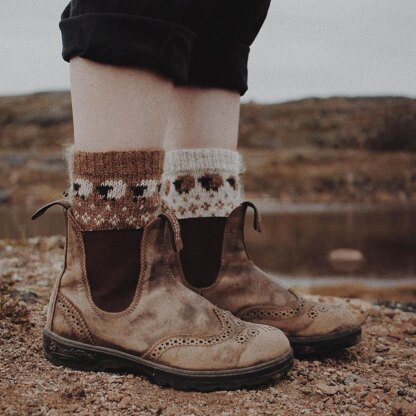 The socks are knitted top-down and in the round. The heels are knitted using the afterthought heel technique.