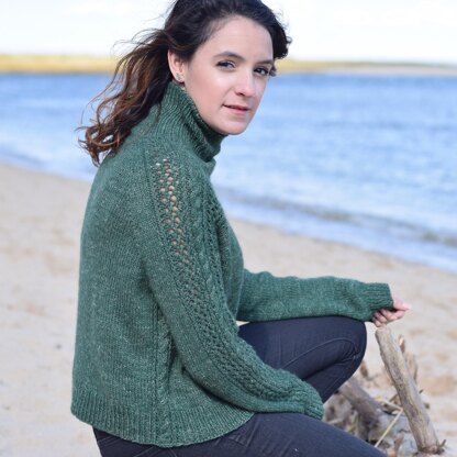 Oxalis is a raglan pullover knit from the top down with a bit of positive ease. Beginning with a cozy turtleneck, the sweater continues seamlessly with a delicate cable and lace pattern along the sleeves and a cable detail along each side of the body. Although the pattern is written for a slightly cropped body, Oxalis can easily be lengthened. Instructions, with video support, are given for beginning the pullover using a tubular cast-on or using an alternate 1x1 long-tail cast-on.