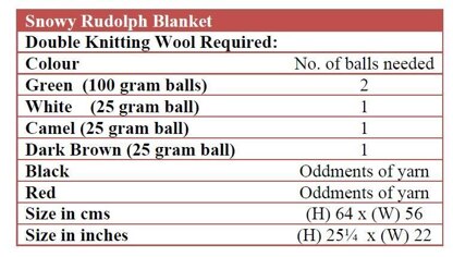 The Blanket is knitted in one piece with moss stitch edgings and a dash effect pattern. In the centre is a Rudolph the Reindeer in the snow motif with a red pompom nose. Some experience is needed when working the repeat pattern and the motif. Written instructions (in English) are provided and a chart to follow for the motif.