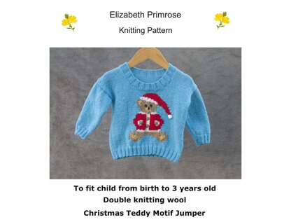 Knit our Christmas Teddy Jumper suitable to fit a child from birth to 3 years old.
