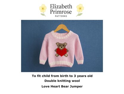 Love Heart Bear sweater to knit with a Teddy motif and 3 button opening to one shoulder