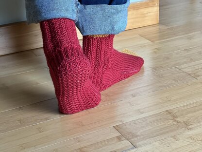 These socks use 3-on-1 stitch and short rows to make a cushioned sole. I began making these socks to help with my mother's pain from peripheral neuropathy, then I came home from a hike with sore feet. I thought that other people might like them as well.