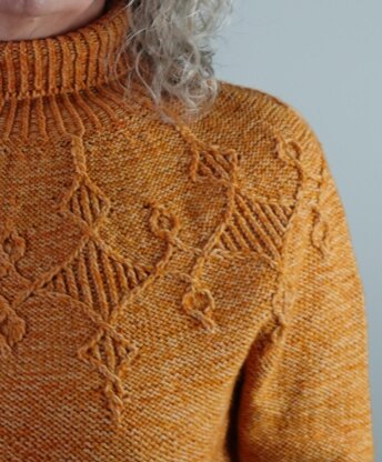 Pagoda es un suéter de canesú redondo decorado con texturas que recuerdan los bonitos tejados de las pagodas, de ahí el nombre. Se teje de arriba a abajo empezando por el cuello, del que tienes tres opciones (caja, perkins o alto). Lleva una serie de vueltas cortas (en las que se continúa el elástico retorcido con las trenzas), para elevar un poco la parte de la espalda, se separan cuerpo y mangas a la altura de la sisa y se sigue tejiendo el cuerpo hacia abajo. Después se tejen las mangas.
