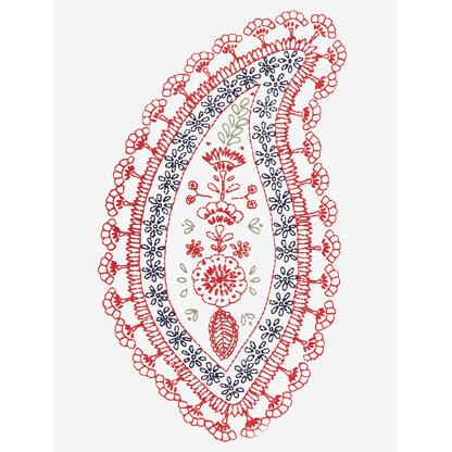 This free embroidery design features a detailed paisley motif - with delicate floral patterns throughout the motif. Stitch up this beautiful paisley motif for your next DIY Project - ideal for white blouses or cushion covers. Learn how to embroider with our guide to embroidery stitches!