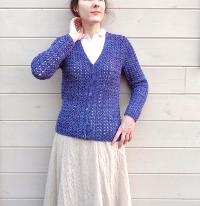 This sweater gently skims and flatters the figure thanks to the full-body elastic rib and lace stitch. This pretty stitch made me think of little paisleys while knitting.