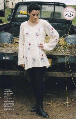 This is a pattern for a Paisley Tunic, originally published in Knitting magazine. It has paisley motifs knitted in intarsia over all of the tunic, with garter stitch edges. the charts are turned around or knitted as mirror images for some. The tunic is flared at the bottom. the yarn has been discontinued. Any fine mohair mix yarn can be used to the same tension. Photo Laurel Guilfoyle for Knitting magazine.