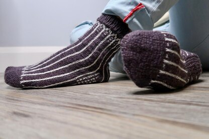 This sock pattern is part of my ‘Palaces of the Grand Canal’ collection. It is inspired by the beautiful Palazzo Pisani, an 18th Century majestic building that stands facing the Grand Canal. It is decorated with beautiful baroque stoneworks. The interior finds paintings and frescoes from the major Venetian artists such as Tiepolo. The characteristic colorwork of this pattern is created with a combination of stranded colorwork and mosaic knitting which gives both colour accents and texture. The heel, is a reconstruction from a traditional heel flap and gusset, present in old Venetian hand-knitted stockings.