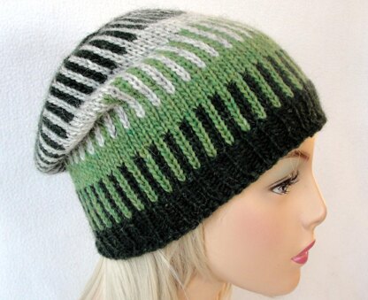 Modern stranded color work slouch beanie for toddlers, children and adult/teens. Stunning in many different color combinations. Easily completed in a few evenings.
