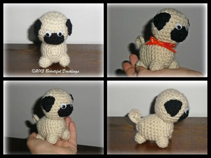 This pattern is for a miniature stuffed Pug, small enough to fit in your palm.