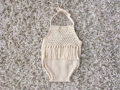 Fits both newborn and 21-22 inch reborn size knit Panache halter style romper with tassels - Pattern THIS IS NOT THE FINISHED ITEM