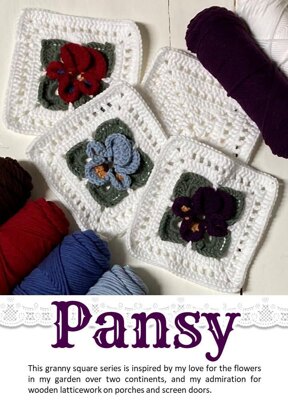 This granny square series is inspired by my love for the flowers in my garden over two continents, and my admiration for wooden latticework on porches and screen doors.