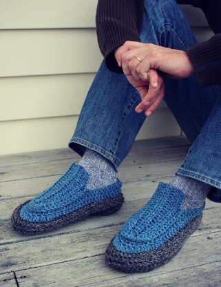 Slippers work up quickly using any worsted weight yarn and crochet hook size H (5.0 mm).