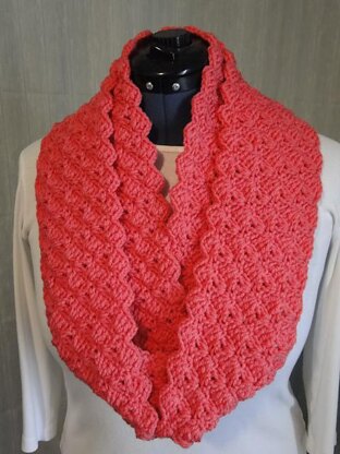 This scarf is made using one ball of yarn. You can always make it wider. It is a nice weight not to heavy. It works up real fast you can make it in one night.