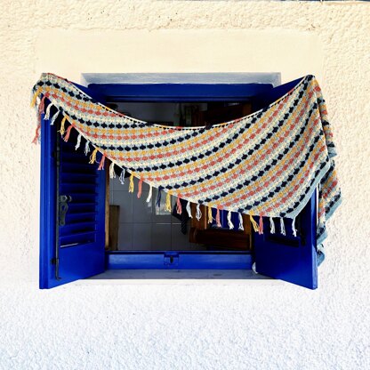 Treat every day like it’s a celebration when you wear your Paper Lanterns shawl! The asymmetric triangle features stripes of tiny lanterns dancing across it. The shawl can be worked in just two colours or as many as you’d like. Choose a bright and bold or soft and subtle colour palette to suit your style. This is also a great chance to use up bits of leftover yarn.