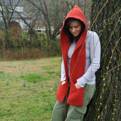 | One size only: | Length (from bottom of pocket to bottom of pocket- laid flat- before seaming): 76" (163cm) Width of scarf: 6.5" (16.5cm) |