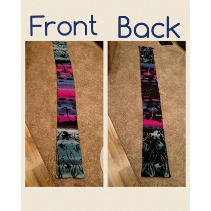 The stars in the pattern will bend around the neck and come back around so that the island and fish are right side up while the scarf is hanging.