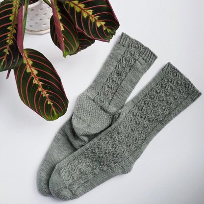 Say hello to the Parky Socks! These socks feature an intricate looking stitch pattern made up of twisted stitches and tiny bobbles, but it’s actually a super simple repeat that makes for a fun and relaxing knit with just enough detail to keep you engaged! Knit toe up and with the naturally stretchy stitch pattern they give a lovely comfortable fit.