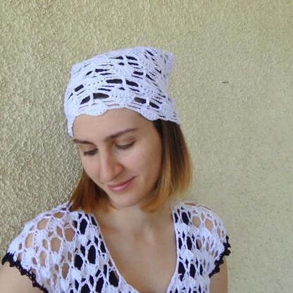 A perfect summertime cover up, a triangle head scarf, quick to make ! A pretty lacy bandana to tie on your head and add style in your outfit!