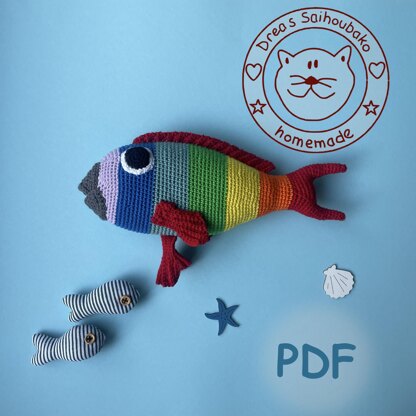 In this pattern I used yarn with yardage 160 m/50 g. The finished fish has a length of about 27 cm.