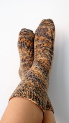 Pastorcita Socks is an easy DK weight cable pattern worked toe-up, with gusset and slipped stitch heel for better fitting. Instructions are written for magic loop method, the cable instructions are charted and written for your convenience.