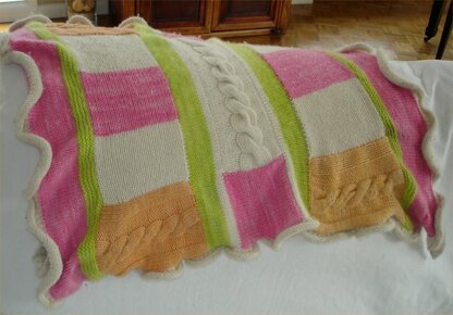 This baby blanket pattern is the perfect project for the knitter that needs something fun, unique and beautiful to keep them interested. Finished measurements 28"x 32". Perfect for a stroller. This looks great in many different color combinations. It is soft, ruffled, cabled and much, much more.
