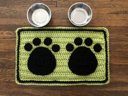 A cute mat for your pets food and water bowls. Quick and easy pattern for your "fur baby" using bulky yarn or use 2-3 strands of worsted weight yarn. Paw prints are crocheted separately and sewn on. Easy to understand written pattern.