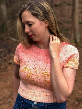 Peach Tea is a delightful cropped pullover with all the customization you could want. It contains instructions for 3 lengths of sleeves from short to long. You can create a scrappy marled fade or use color blocks of DK, the options are endless!