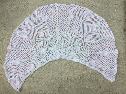 This pattern was inspired by a shawl I knitted from Makerist, which was much bigger and I adapted some of the techniques to create my own design which more resembles an actual peacock tail. I started it in some spare baby yarn and it worked so well I decided to complete it as a baby's shawl!