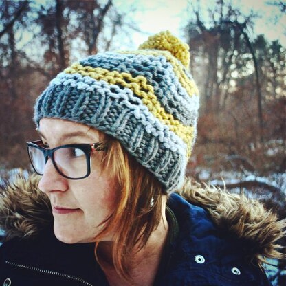 This hat is makes a great near-instant gift in super bulky yarn. An easy ripple pattern turns stripes into waves!