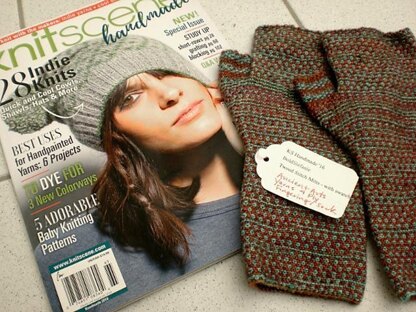 These fingerless mittens feature a woven-like texture that is easy to knit and does not roll – so there is no need for a ribbing! The thumb gusset increases are worked in the center of the thumb so they do not disturb the texture. A sewn-bind-off is used to mimic the longtail-cast-on. If you use a (handdyed) yarn with 2 colors in longer segments, the stitch pattern forms little circles without having to do colorwork. The sample was knitted using Ancient Arts’ colorway Prairie Flower. 50g is enough to make one pair in the given sizes, so why not knit one for yourself and one for your best friend?