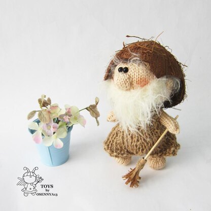 • 4 double-pointed needles in a size suitable for the yarn weight you are using. I recommend using needles a size or two smaller than the yarn calls for, to produce a firm fabric. İ used Needles size 2 (3mm), size 6 (4mm). • Crotchet size 2 (3mm) • Cream acrylic yarn (Kartopu «Flora» (100% acrylic) for doll • Jute yarn for coverall • White fluffy yarn (YarnArt «TECNO » 100% polyamide) for hair and beard • Plastic tube length of about 10 cm. (For attachment of the head, neck and body together) • Toy stuffing • Plastic eyes or 2 buttons for eyes • Wood buttons for the trousers • Half coconut for hats • Yarn needle • Stitch holder