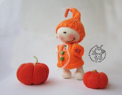 Materials needed 4 double-pointed needles in a size suitable for the yarn weight you are using. I recommend using needles a size or two smaller than the yarn calls for, to produce a firm fabric. used Needles size 2 (3mm), for Clothing -3.0mm Cream acrylic yarn (Kartopu Flora 100% acrylic 100 g-230 m) for doll Orange colored yarn for pumpkins and Clothing (Yarn NAKO Superlambs Special (50% wool, 50% premium acrylic) 100g - 150m . Toy stuffing Plastic eyes or 2 buttons for eyes, eyelashes Yarn needle Stitch holder Pencils or shade for toning 8 buttons