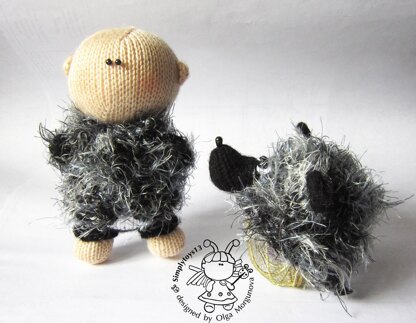 Materials needed • 4 double-pointed needles in a size suitable for the yarn weight you are using. I recommend using needles a size or two smaller than the yarn calls for, to produce a firm fabric. İ used Needles size 2 (3mm), size 6 (4mm). • Cream acrylic yarn (Kartopu «Flora» (100% acrylic) for doll • Black melange soft eyelash yarn YarnArt Tecno 50 grams 109 yards (100 meters) for jacket, hood, trousers • Black and white acrylic yarn (Kartopu «Flora» (100% acrylic 100g - 230m) • Plastic tube length of about 10 cm. (For attachment of the head, neck and body together) • Toy stuffing • Plastic eyes or 2 buttons for eyes • Buttons for the jacket, hood • Yarn needle • Stitch holder
