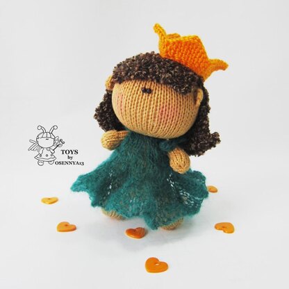 Materials needed 4 double-pointed needles in a size suitable for the yarn weight you are using. I recommend using needles a size or two smaller than the yarn calls for, to produce a firm fabric. used Needles size 2 (3mm) , size 4 (3.5mm) for clothing, Needles size 3 (2.5mm) Cream acrylic yarn (Kartopu Flora (100% acrylic) for doll Green yarn for dress(Kid-mohair by Wolle Rdel Lace / 2 ply 80% Mohair, 20% Polyester 101 meters / 25 grams ) Brown boucle yarn for hair (50g , 12 ply) Yellow colored yarn for crown (Kartopu Flora 100% acrylic 100g ” 230 m) Plastic tube length of about 10 cm. (For attachment of the head, neck and body together) Toy stuffing Plastic eyes or 2 buttons for eyes Yarn needle Stitch holder