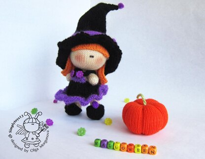 Knitted doll toy.  The head, arms - rotate The finished pebble doll is approximately 6,3 inches (16cm) tall. Pumpkin (diameter 3,15 inches(8 см ) Funny doll will bring in your house the smell of fairy Halloween.