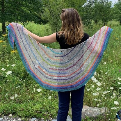 Pebmarsh is a very simple shawl, with pretty slashes of color and garter stitch.